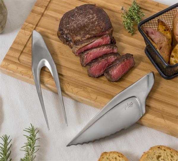 Набор из ножа и вилки для стейка 18,5 см на дерев. подставке 34x22 см, Silex