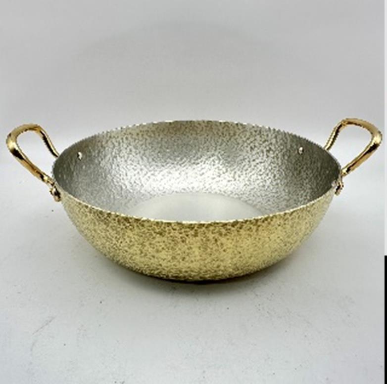 Сковорода 18,5x6 см с двумя ручками "Брасс Эxо", латунная с лужением внутри, с тиснением
