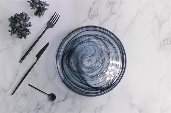 Салатник d 15 см h 4 см, стекло, цвет / декор бело-черный, Hollow