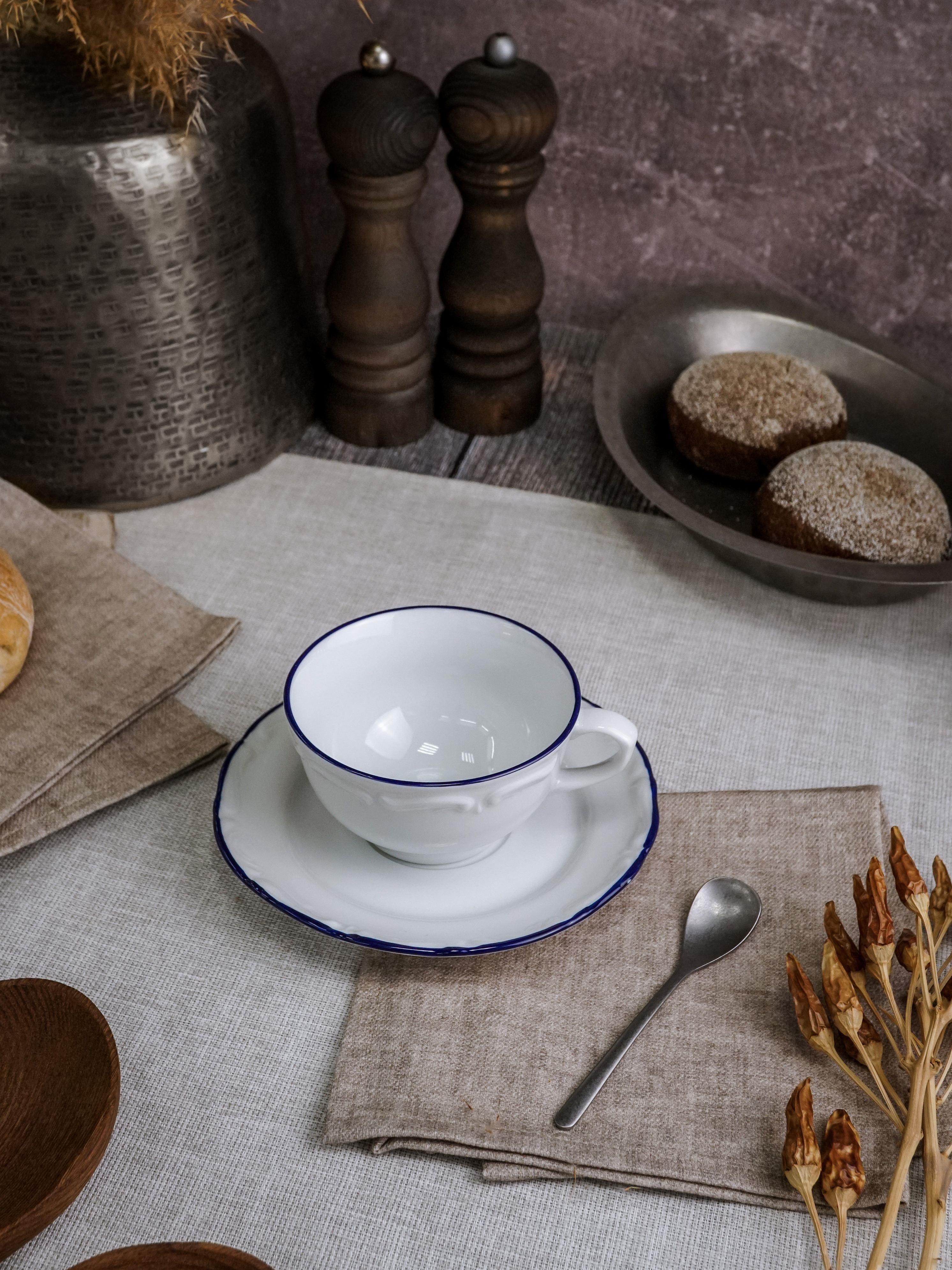 Блюдце 12 см, кант синий