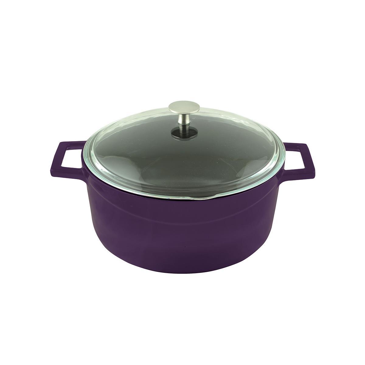 Кастрюля со стеклянной крышкой 4,49 л, внутр. размер d 24 см h 11 см, внеш. размер 32x25x12,5 см, чугун, цвет фиолетовый