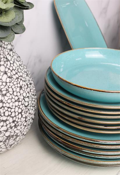 Сервиз Porland Seasons бирюзовый, 32 предметов, на 6 персон (Салатник 830 мл - 1 шт; Блюдо овальное - 1 шт; Миска 770 мл - 6 шт; Тарелка 28 см - 6 шт; Тарелка 24 см - 6 шт; Кружка 340 мл - 6 шт; Блюдце 16 см - 6 шт)