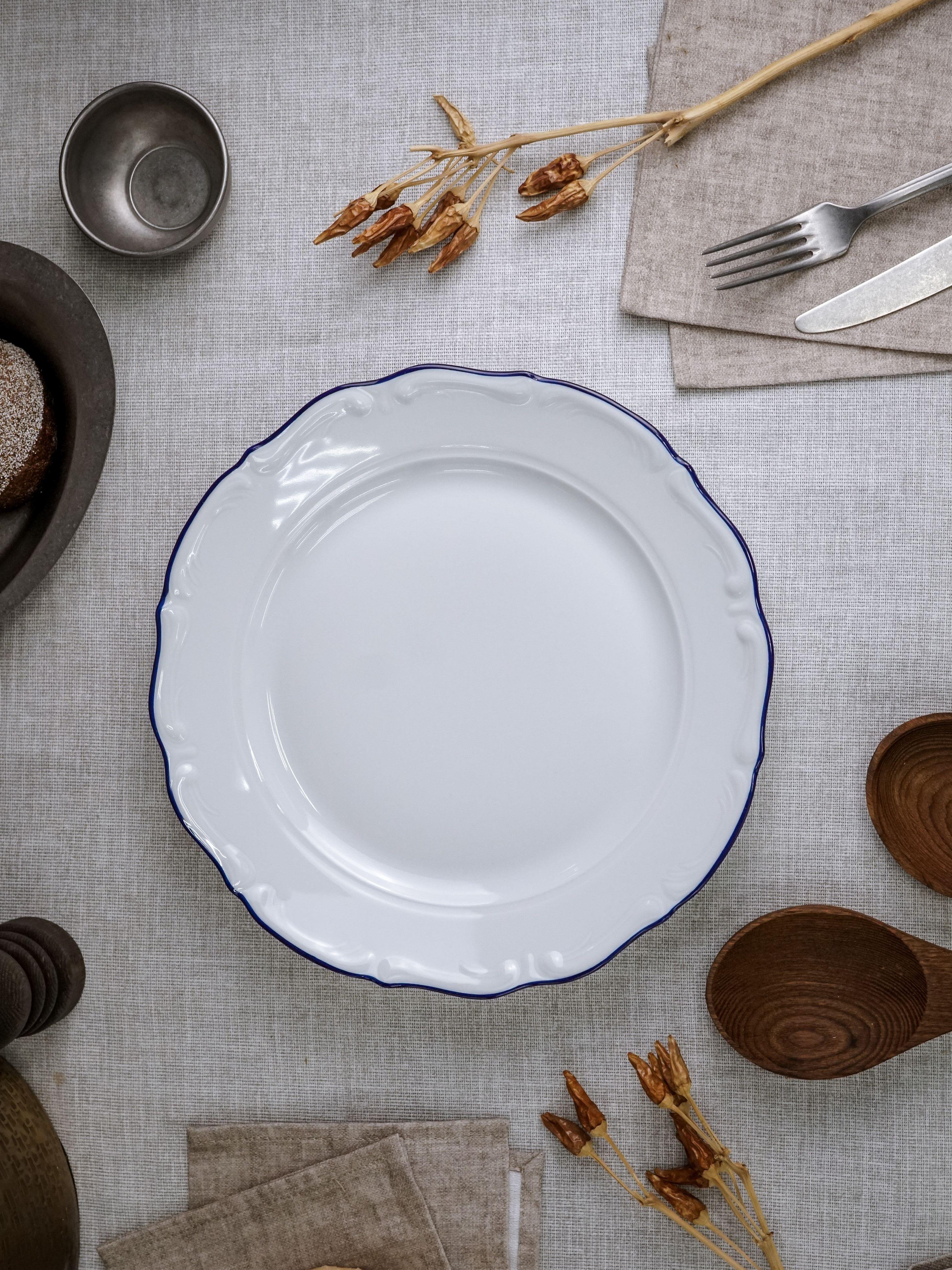 Тарелка мелкая 27 см, кант синий
