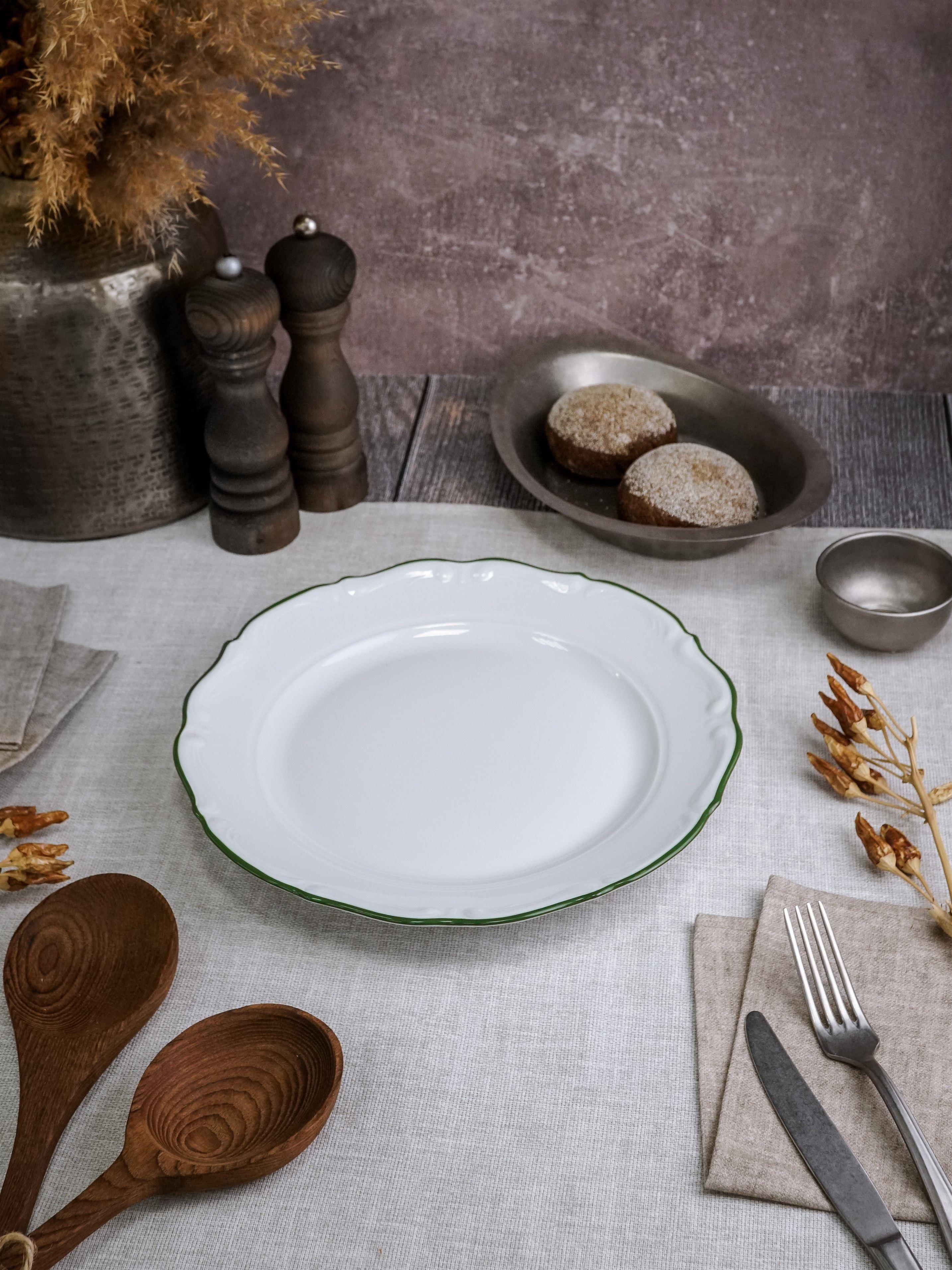 Тарелка мелкая 31 см, кант зелёный